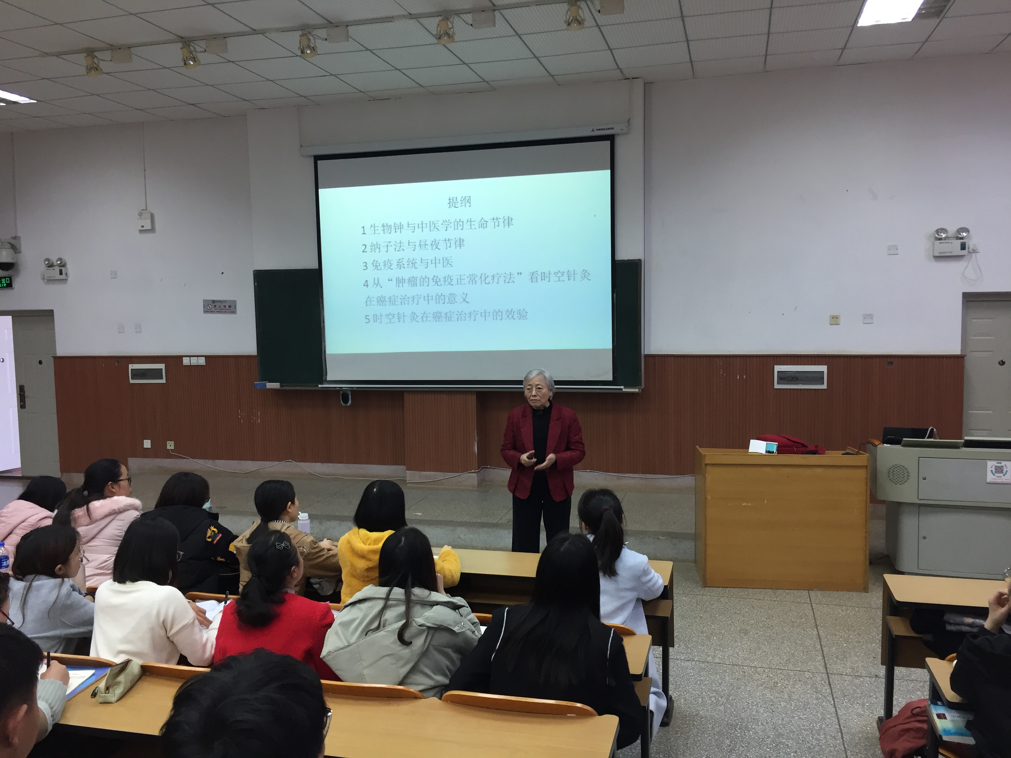 鞠丽雅教授从三个经典诺贝尔奖案例入手,深入浅出地介绍了近年来诺贝尔奖免疫学方面的前沿进展;接着,通过2017年诺贝尔奖—生物节律分子机制的讲解,结合临床案例,详细阐述了时辰的生理学、病理学、治疗学,介绍了时辰、季节、地域与人体之间的关系,为我院师生的科研工作提供了新的发展思路。