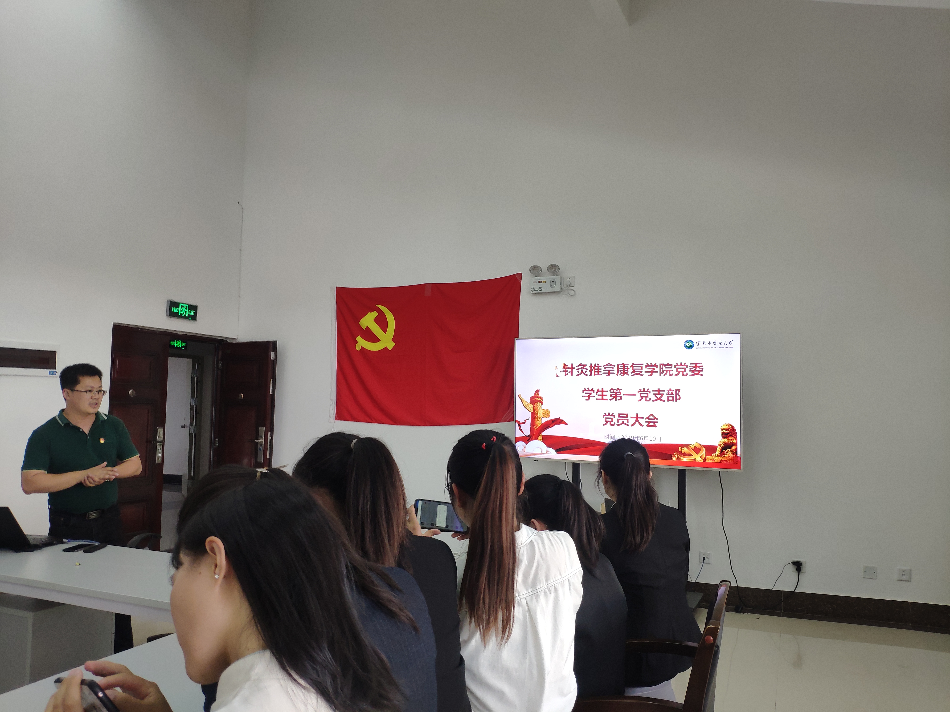云中讯 (通讯员 黄培冬 杨越) 为进一步提高毕业生党员党性修养和政治觉悟,引导毕业生党员践行全心全意为人民服务的宗旨。6月10日下午,针灸推拿康复学院学生第一党支部于系部办公楼509会议室召开毕业生党员会议。本次会议邀请学院院长邰先桃教授、党委副书记杨剑南同志、副院长袁恺副教授出席,全体毕业生党员参加,会议由支部书记黄培冬主持。