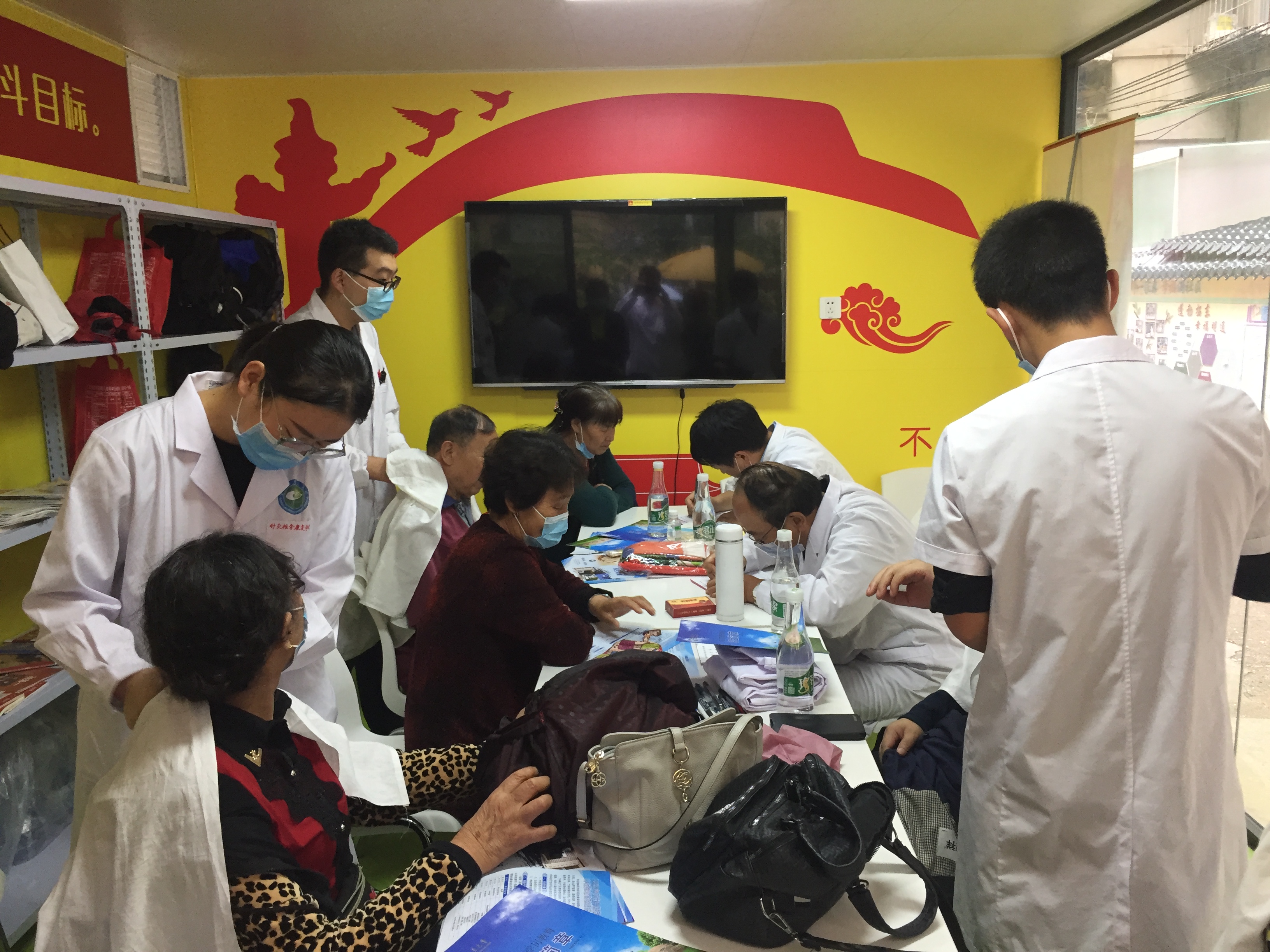 天空下着绵绵细雨,但却挡不住志愿服务队为群众解决健康问题的火热之心, 针灸推拿康复学院党员教师和部分研究生党员共15人,一早就来到明通社区,为社区居民开展义诊、义推服务。社区居民体验了推拿、艾灸、耳穴等中医特色疗法。此次义诊活动内容丰富,独具特色,不仅向明通巷社区居民宣传了中医针灸推拿和中医养生知识,更向民众传递了中医“治未病”理念,弘扬了中医传统文化。活动不仅增强了党员的党性观念,增强了团队的凝聚力,更依托专业知识为群众送去了健康。活动在持续两个半小时后圆满结束,党员用自身力所能及的方式,践行了“为人民服务”的宗旨,受到了通巷社区群众的一致好评,同时也拉近了与社区居民们的距离,为和谐社区建设贡献了力量。