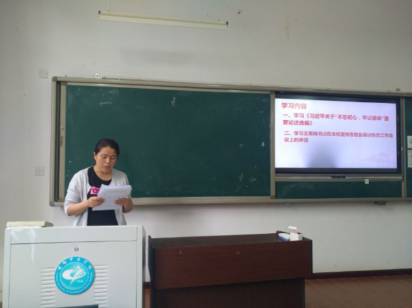 组织员曲文慧带领全院教师学习《习近平关于“不忘初心,牢记使命”重要论述选编》中的文章。
