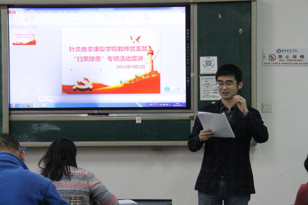 云中讯(通讯员 曲文慧)2019年4月4日下午16:00-18:00,针灸推拿康复学院全体教师在3103教室开展了第三次教师理论教育学习,学院党政办主任王丽娟同志主持会议。