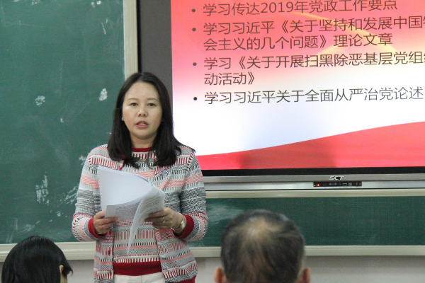 首先,学院党委书记王燕同志传达2019年党政工作要点。通报云南中医药大学2019年工作重点;基层党建创新提质年实施方案和重点任务项目清单;2019年组织工作要点;第二附属医院/针灸推拿康复学院“院院合一”工作方案(征求意见稿)等。