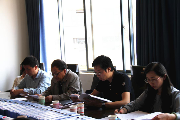 最后,学院班子成员述责述廉。工作人员发放民主测评表。