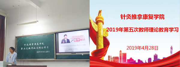 云中讯(通讯员 曲文慧 )2019年5月16日下午,针灸推拿康复学院全体教师在3103教室开展了第五次教师理论教育学习,学院党委组织委员王丽娟同志主持并带领全院教师学习。