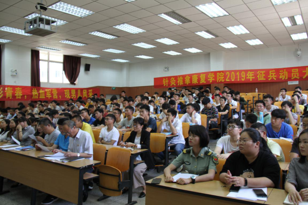 云中讯(通讯员 黄婷婷) 5月16日中午,针灸推拿康复学院在1214教室召开2019年征兵动员大会。参加此次动员大会的有学工部副部长、武装部专职副部长王骏,针灸推拿康复学院党委书记王燕,副书记杨剑南,全体辅导员、班主任,以及全院在校男同学共200余人。