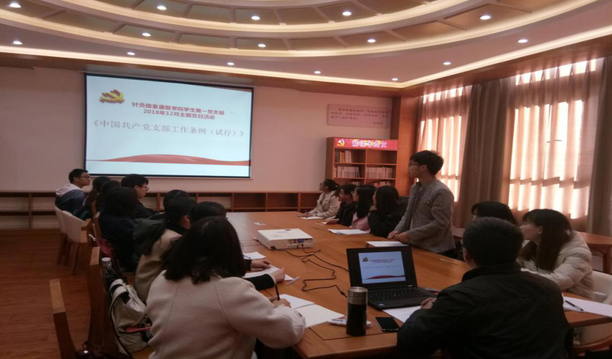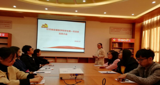 云中讯(通讯员 黄培冬 李正艳 肖瑞仙)为促进大学生党员认真学习理解党的基本知识,针灸推拿康复学院学生第一党支部于12月24日在学校图书馆党建书屋,集中学习了《中国共产党支部工作条例(试行)》(以下简称《条例》)。活动由支部书记黄培冬主持,李英智和杨越同志主讲,支部全体党员参加。