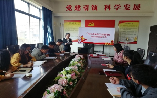 之后李正艳同志带领大家学习《中共中央关于加强党的政治建设的意见》,主要包括六方面内容:一、加强党的政治建设的总体要求,二、坚定政治信仰,三、坚持党的政治领导,四、提高政治能力,五、净化政治生态,六、强化组织实施。这是以习近平同志为核心的党中央从党和国家事业全局出发,提出的重大命题,强调党的政治建设是党的根本性建设,要把党的政治建设摆在首位,以党的政治建设为统领全面推进党的各项建设。
