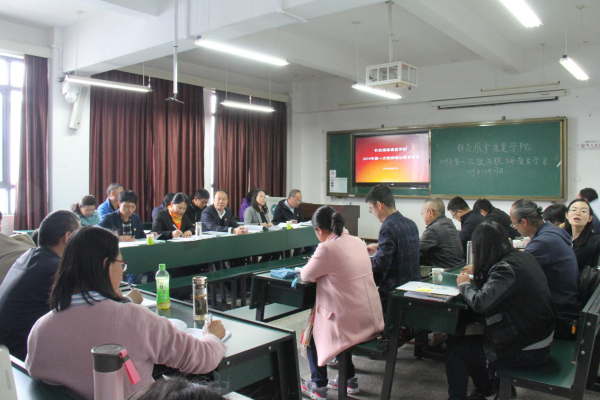 (云中讯 曲文慧 王丽娟)2019年3月7日下午16:00-18:00,针灸推拿康复学院在2408教室开展了第一次教师理论教育学习,校党委副书记郭平同志、组织部副部长蔡林礼同志参加了学习活动,学院党委副书记杨剑南主持会议。