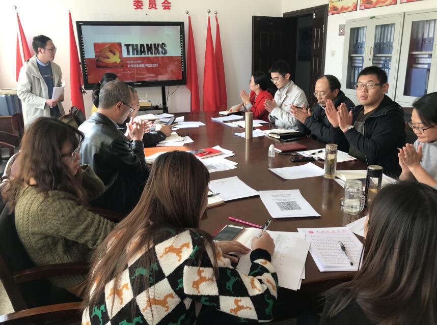 接着,党员教师郭太品同志作了题为《青春逢盛世,奋斗正当时》的党课。“要深入领会《条例》精神实质,要更加自觉地在思想上、政治上、行动上同以习近平同志为核心的党中央保持高度一致,做好本职工作,完成立德树人任务。”党支部书记袁恺同志总结强调,我院在教学改革实施等工作中要紧跟时代步伐,进一步加强党建和教学工作的计划性、科学性和可操作性。