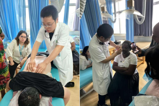 随后,交流团成员亲自体验了中医外治疗法的操作过程。在医护人员的指导下,他们尝试了推拿、针灸等手法,切身感受了中医技术的独特魅力。