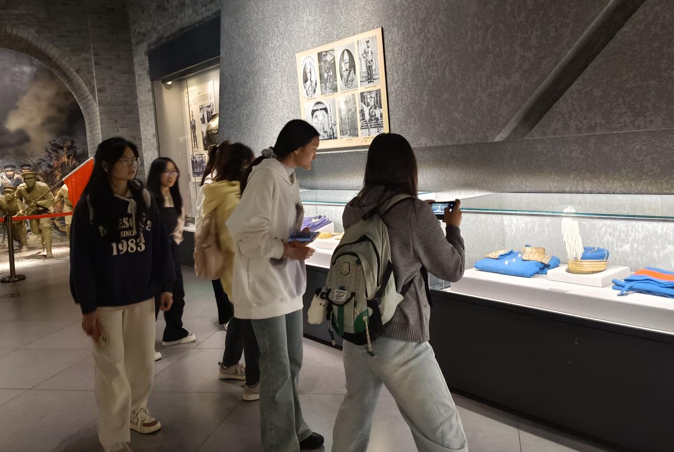 进入展厅后,一幅幅珍贵的历史照片和一件件饱经沧桑的革命文物无声地诉说着那段波澜壮阔的革命岁月,让同学们仿佛穿越时空,回到了那个硝烟弥漫的年代。参观过程中,同学们不时提出问题、积极互动交流。