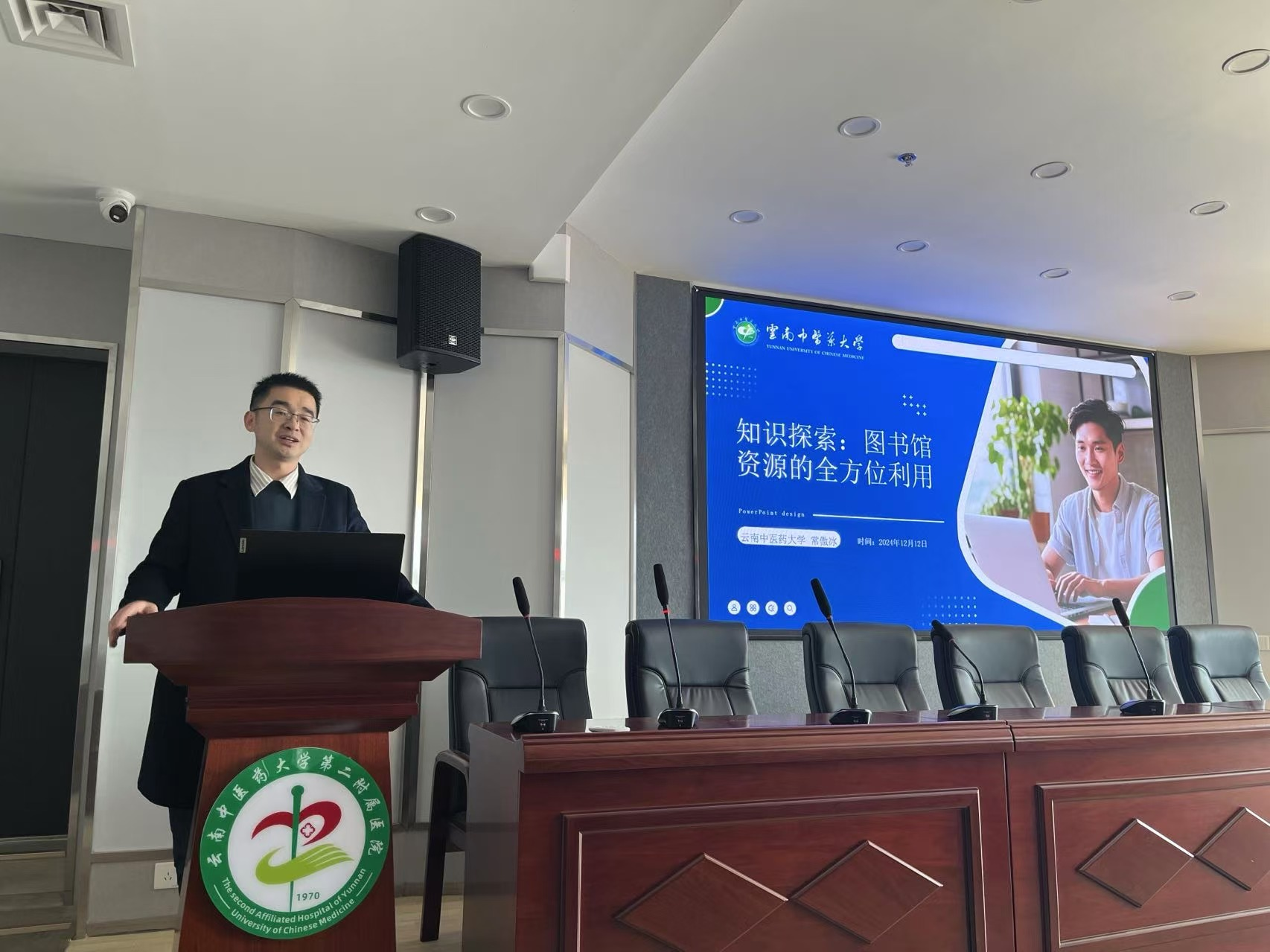 (通信员 陈柏君) 12月12日下午,百会讲堂科研能力提升系列学术讲座在我院22楼学术报告厅开讲。本次讲座邀请云南中医药大学图书馆馆长常傲冰开讲,作“知识探索:图书馆资源的全方位利用”主题讲座,院长袁恺主持讲座。