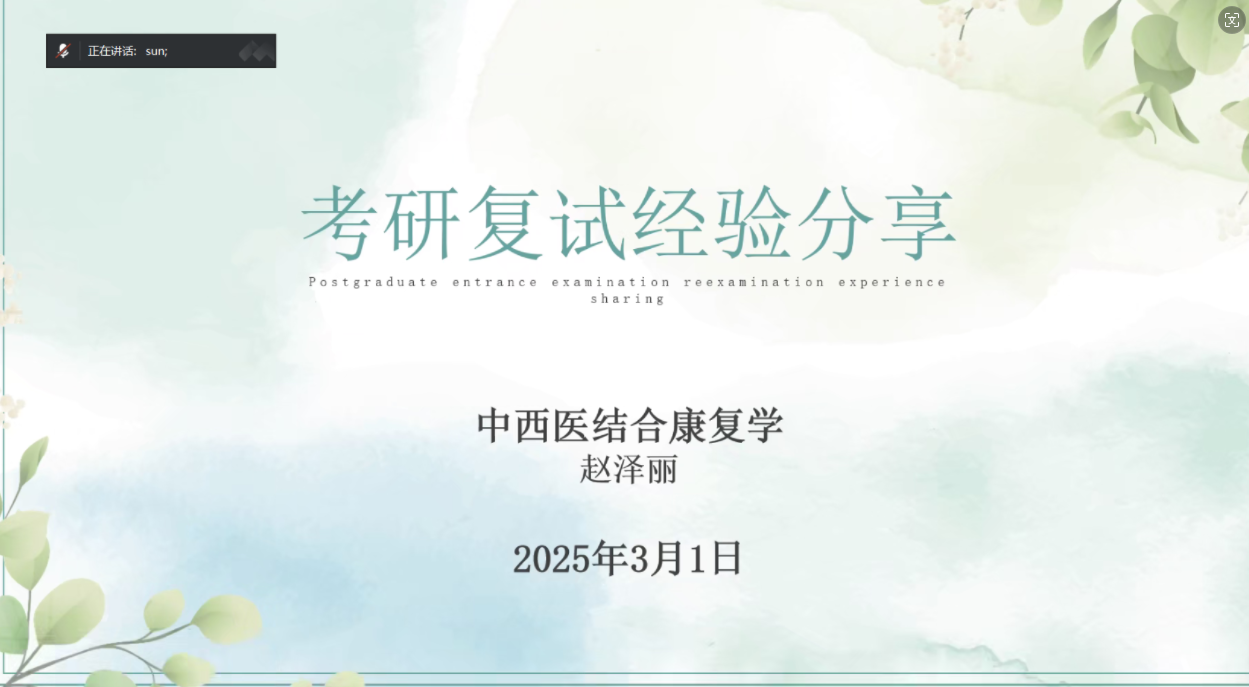 云中讯(通讯员 张志豪 宁婧怡为助力2025届考研学子更好地了解复试具体流程、掌握应试技巧,顺利通过复试,第二临床医学院团委、研究生会2025年2月27日、3月1日晚通过腾讯会议举办了考研复试经验分享会。会议由张志豪老师和十余位成功“上岸”的优秀学长学姐们,为即将参加复试的同学们提供了宝贵的经验指导。