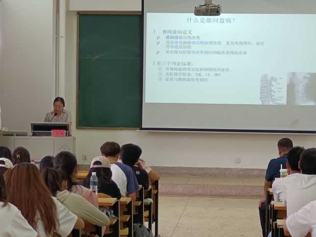 吴皓主任则以颈椎病为例,深入论述了态靶因果辨治的理念,她致力于搭建中西医融合的桥梁,通过中西医结合的诊疗思路,为学生们展示了颈椎病治疗的全新视角。