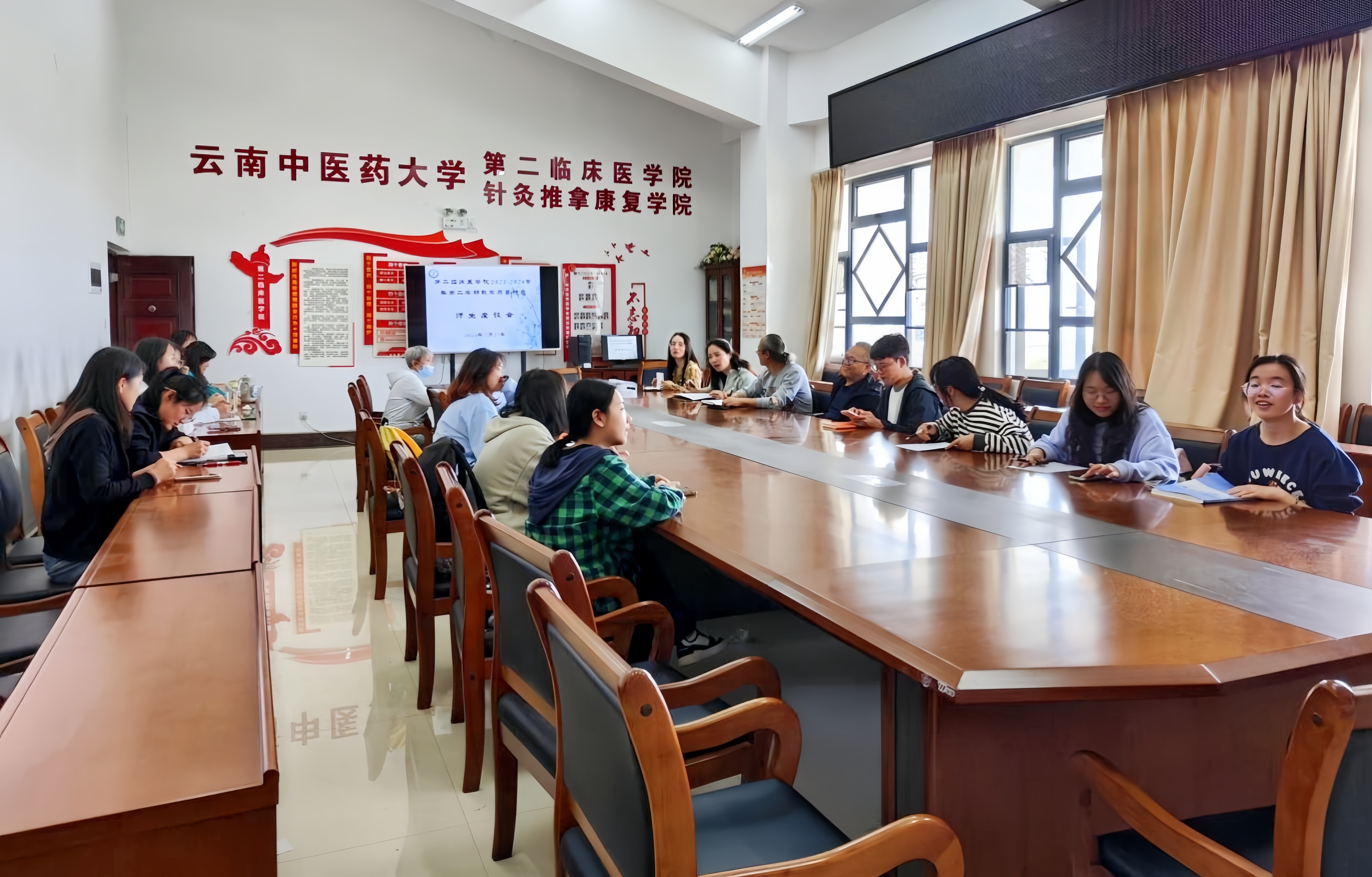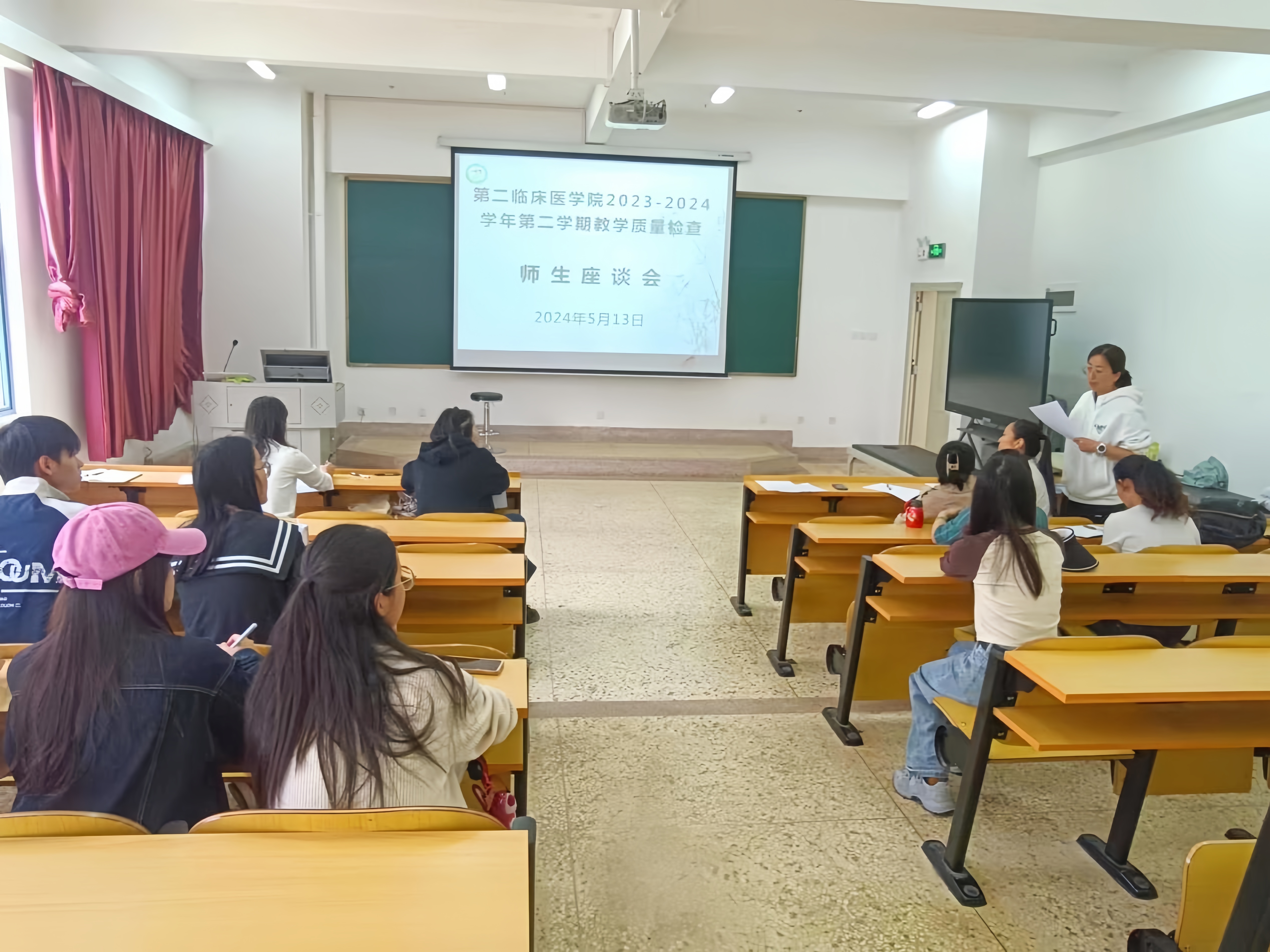 云中讯(通讯员 赵海燕)2024年5月13日,第二临床医学院召开2023-2024学年第二学期教学质量检查师生座谈会。座谈会分别由教学管理科科长张蕾、副科长杨美玲主持,校督导刘海静教授、学院督导委员会全体委员、教学管理科、各教研室主任、教师代表及来自针灸推拿学专业、康复治疗学专业、中医康复学专业、中医养生学专业共35个班级的学生代表参加。