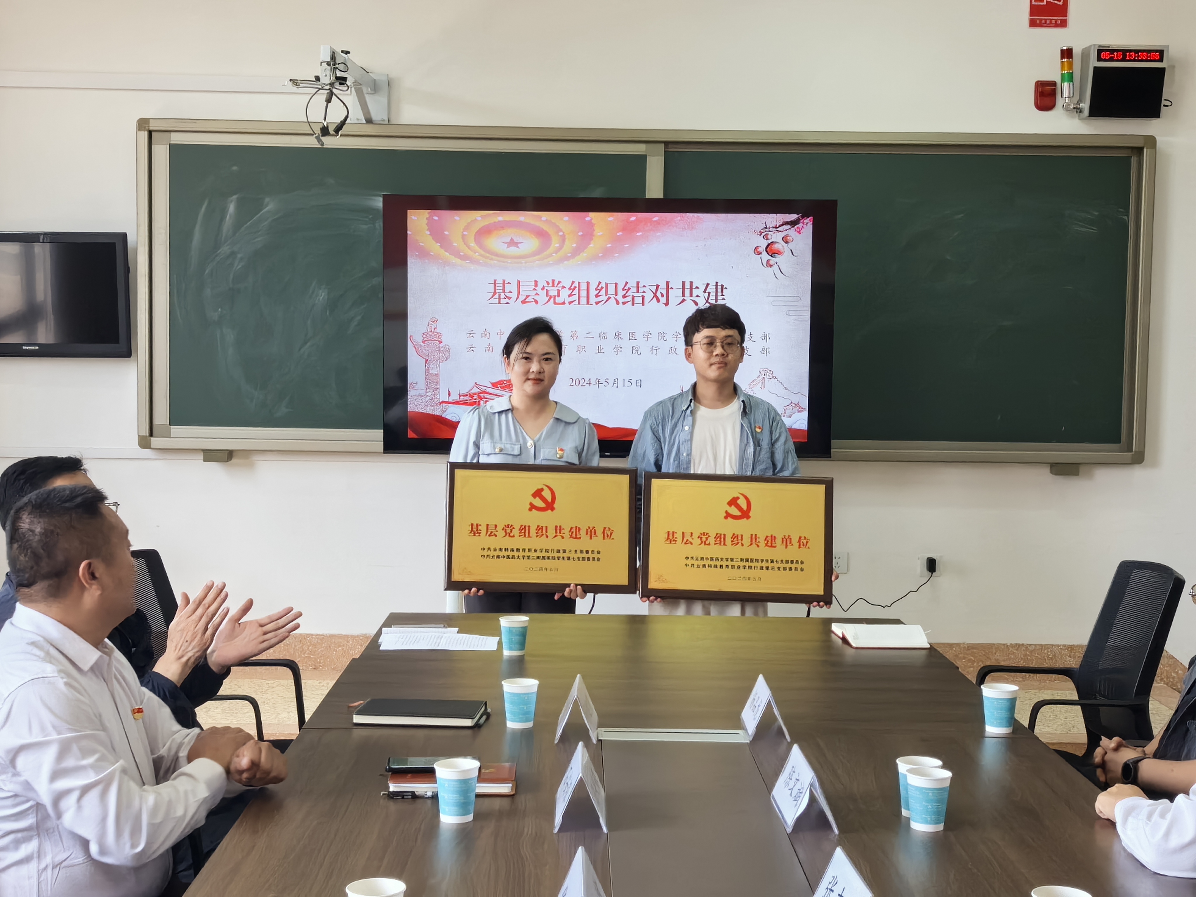 活动当天,开展了学生第七党支部与云南特殊教育职业学院行政第三党支部结对共建授牌仪式,云南特殊教育职业学院党委副书记石安银、纪委书记杨健智出席授牌仪式。双方围绕“扶残助残、中医药文化进校园、大学生教育实践、联合主题党日、打造特色党建品牌”等方面进行沟通交流。