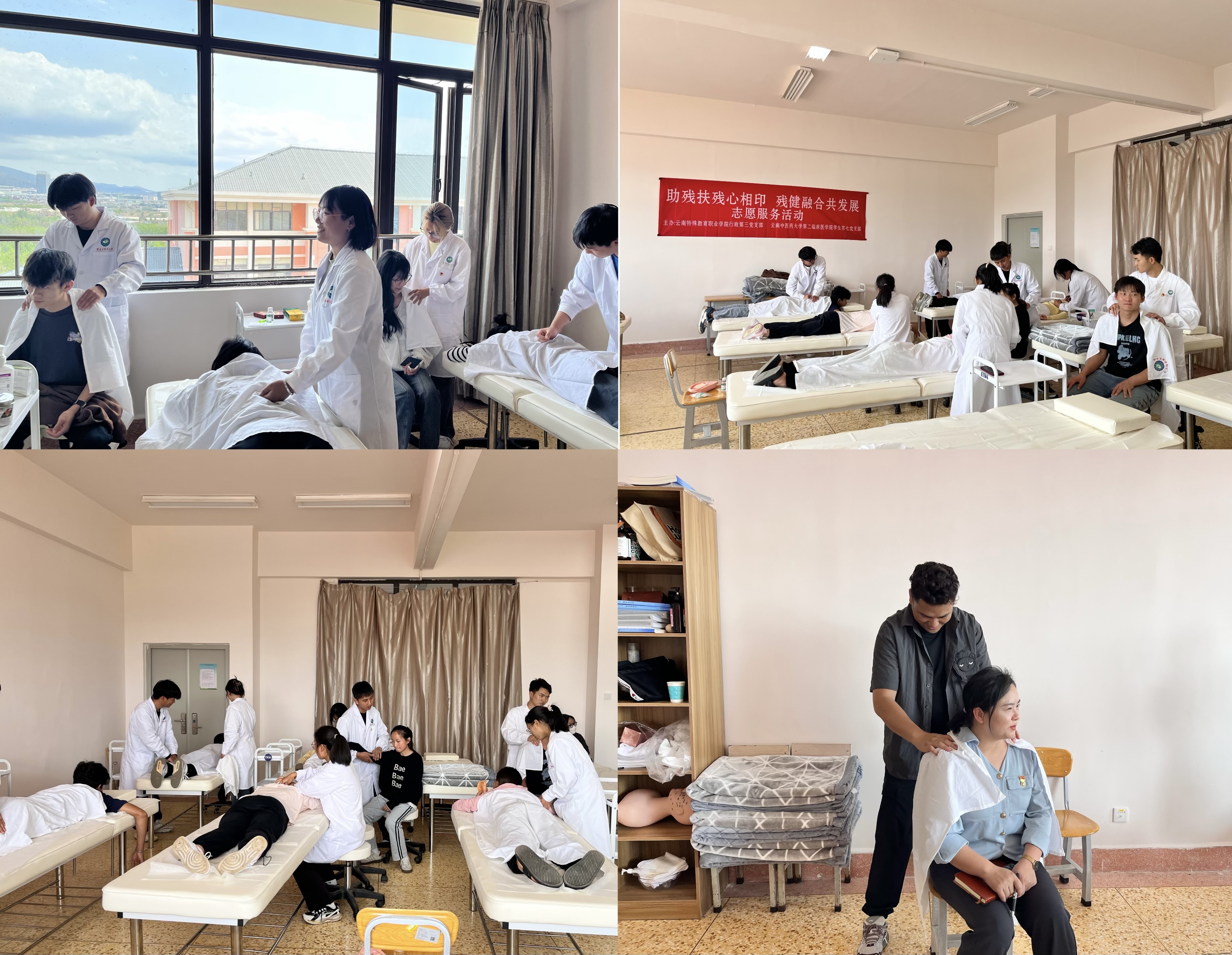 随后,学生第二、第七党支部与云南特殊教育职业学院行政第三党支部联合开展“助残扶残心相印 残健融公共发展志愿服务活动”,为云南特殊教育职业学院师生提供针灸、推拿、脉诊、耳穴贴等中医适宜技术及中医健康宣教服务,受到了该校师生的好评,收获了大批中医爱好者和粉丝。