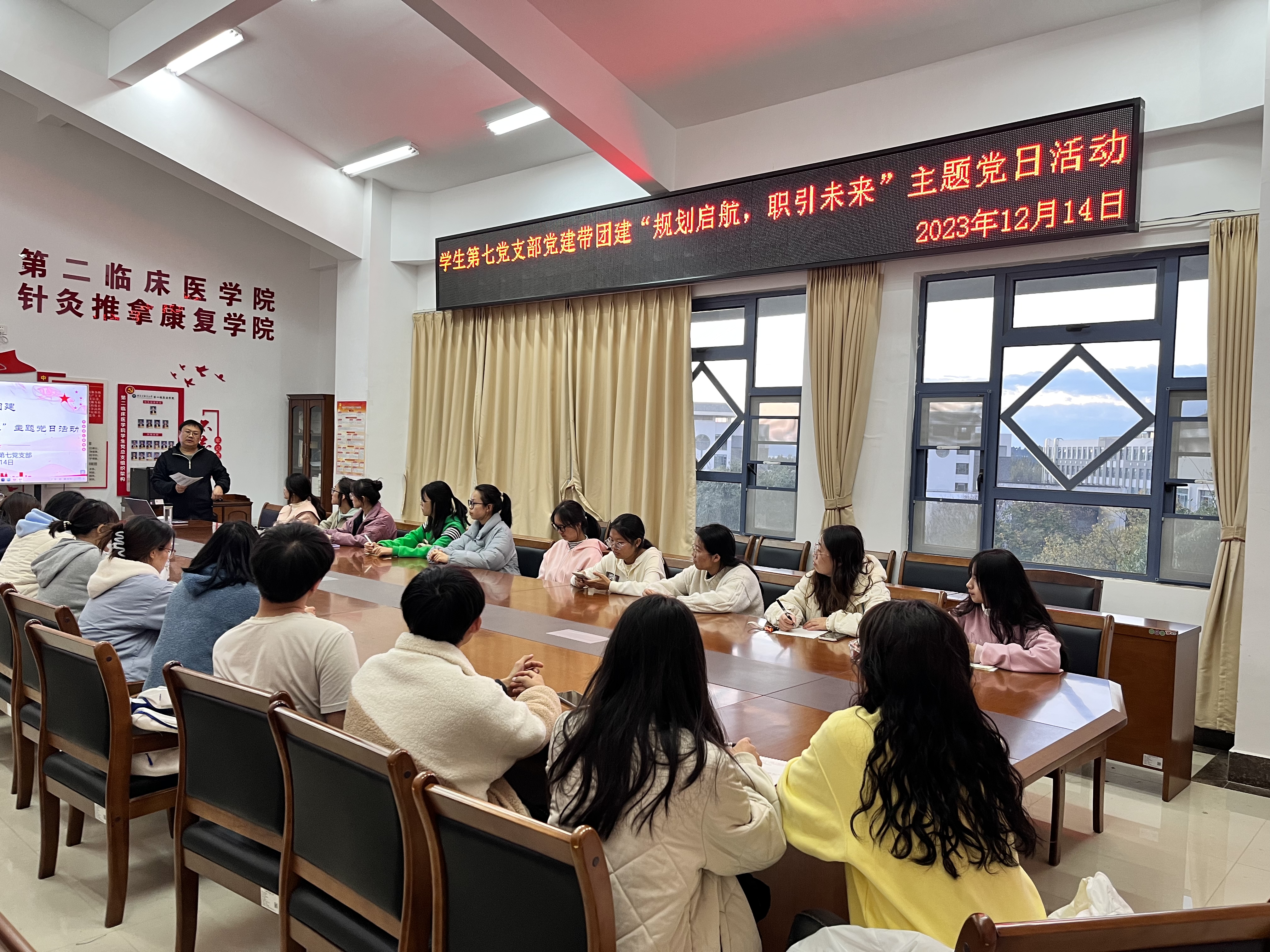 云中讯(通讯员 张志豪)为创建“四心领航”工程党建品牌,推动党建带团建,提升学生就业能力和职场竞争力,促进毕业生高质量充分就业。12月14日学生第七党支部在和合楼509开展“规划启航,职引未来”主题党日活动,院纪委书记陈文斌,支部党员、入党积极和入党申请人参加了此次活动。