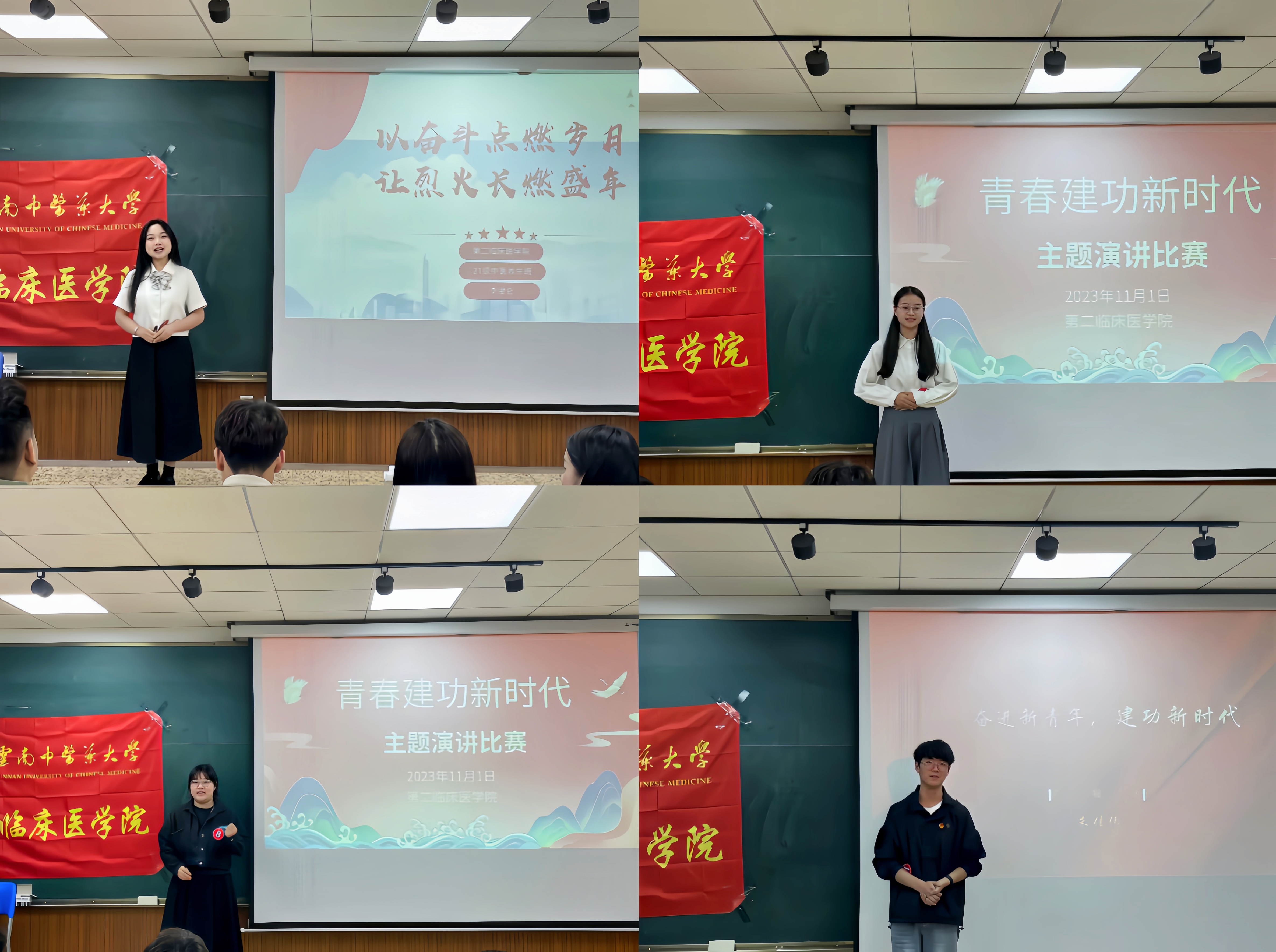 云中讯(通讯员 张志豪 杨玉蝶)为深入贯彻落实习近平总书记关于青年工作的重要论述,鼓舞云中青年建功新时代、彰显青春担当。11月1日晚,第二临床医学院在精专楼6508教室举行“青春建功新时代”主题演讲比赛。由学院张志豪、杨艳芳、李胜男、施英华、杨品龙、王爽六位老师担任评委。