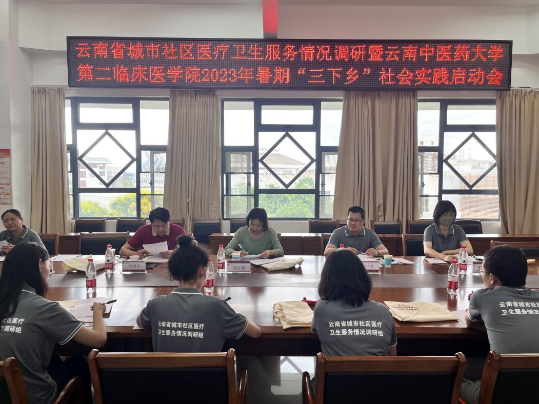 云中讯( 张志豪 )7月11日,云南省城市社区医疗卫生服务情况调研组暨第二临床医学院2023年暑期“三下乡”社会实践启动会在呈贡校区和合楼509举行。中国农工党昆明市委会专职副主委陈红梅、第二临床医学院副院长黄培冬、第二临床医学院团委负责人张志豪,以及调研组师生代表参加启动会,活动由中国农工党昆明市委会副主委、昆明市中医医院副院长李绍荣主持。