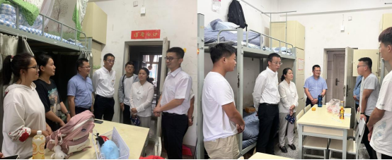 会后,学院党委书记唐柱生、院长袁恺带领学工办老师前往宿舍看望新生,就适应大学生活、职业规划、防电信诈骗、人身安全等内容与新生开展交流。