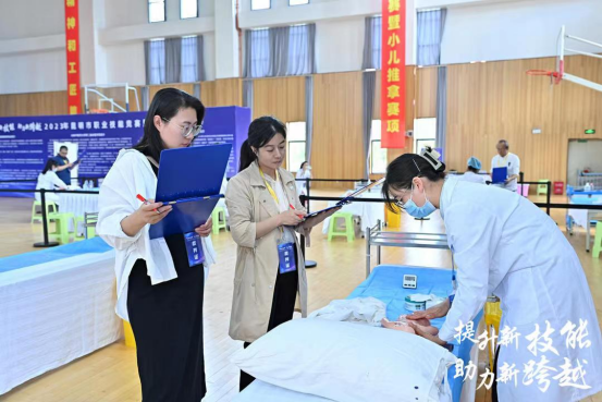 该赛项共有来自全市多家单位的600余名小儿推拿从业者报名参加。经初赛考核选拔,最终有80名选手进入决赛。决赛分为理论部分和实操部分。理论部分采用线上答题形式进行,实操部分为三个赛道,分别选取呼吸系统疾病、消化系统疾病等小儿常见病、多发病作为实操考核内容,取线上答题成绩及三个赛道实操考核成绩作为最终成绩。