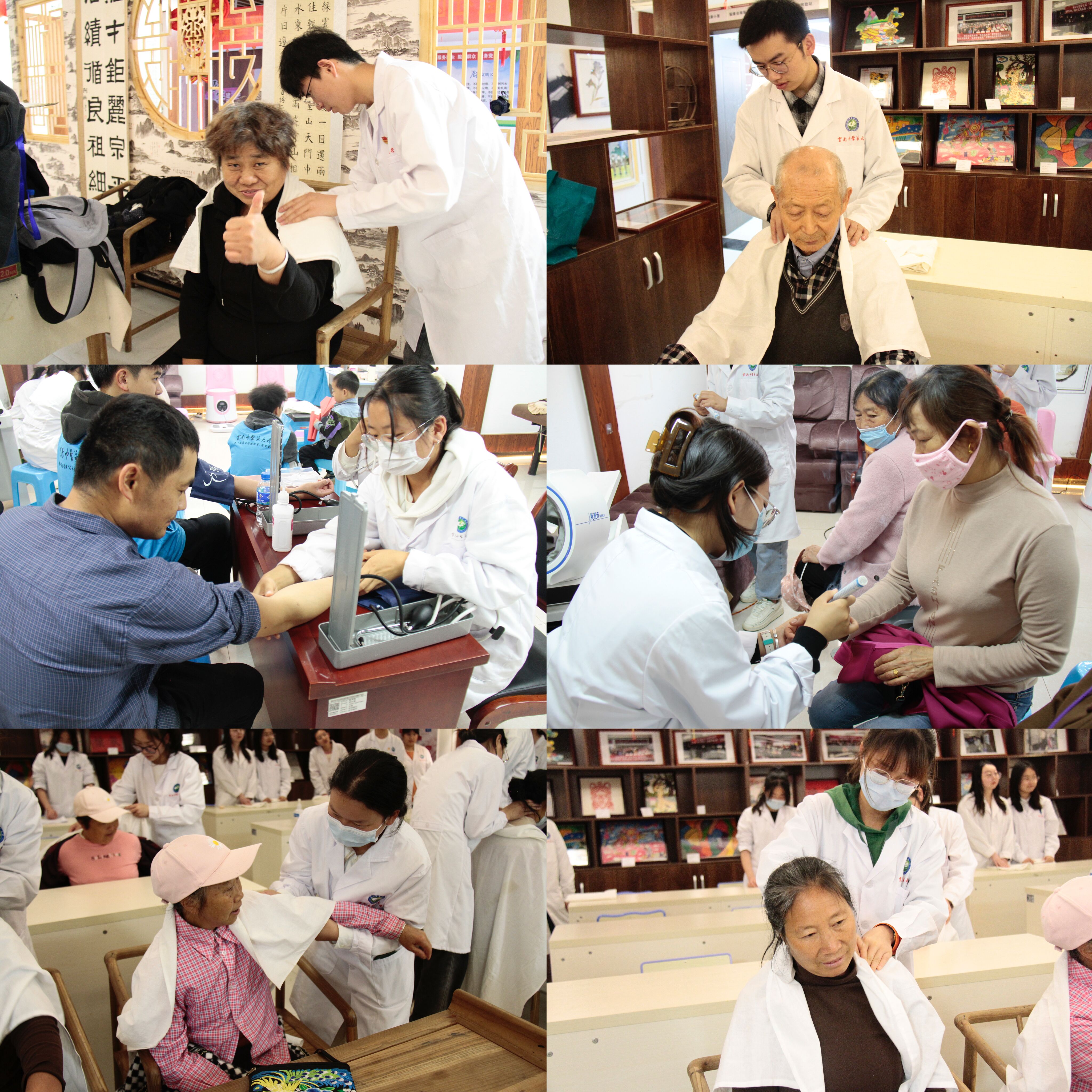 本次活动面向全体社区居民展开,在志愿者的宣传和引导下,“义诊”活动吸引了大量社区居民前来体验中医推拿、艾灸、耳穴贴等中医传统疗法,以舒缓身体疼痛和不适。为使居民能够全身心放松体验推拿。此次营盘社区义诊活动持续了近四个小时,不仅提供了免费诊疗服务,还结合居民的身体健康问题提出合理建议,同时也宣传了中医药的相关知识。志愿服务活动获得了营盘社区工作人员和居民的一致好评。
