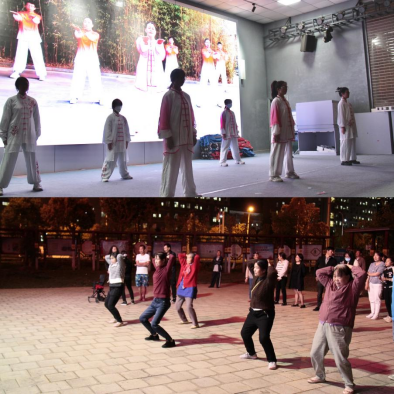 除此之外,学院“百会班”学员还在现场开展了《云中养生易筋经》教学,居民们也积极学习锻炼,为丰富日常生活和形成健康的生活习惯打下基础。
