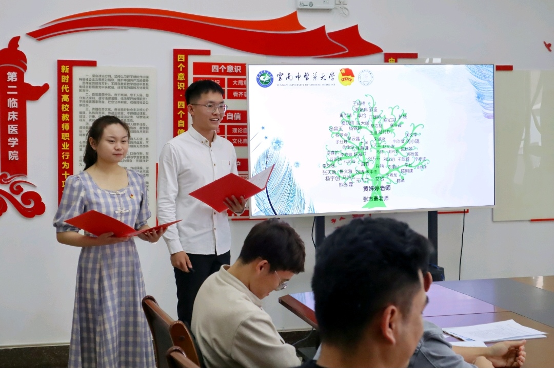 云中讯(通讯员 黄婷婷 吴奕燃 杨德勇)今年,中国共产党将召开第二十次全国代表大会,也是中国共青团成立 100 周年。为更好地团结引领广大青年不忘跟党初心,牢记青春使命,第二临床医学院于2022年4月21日举办以“高举团旗跟党走”为主题的“活力团支部”展示大赛初赛。比赛由学院团委书记黄婷婷主持,辅导员张金涛、张志豪、王联东、杨品龙四位老师担任比赛评委。