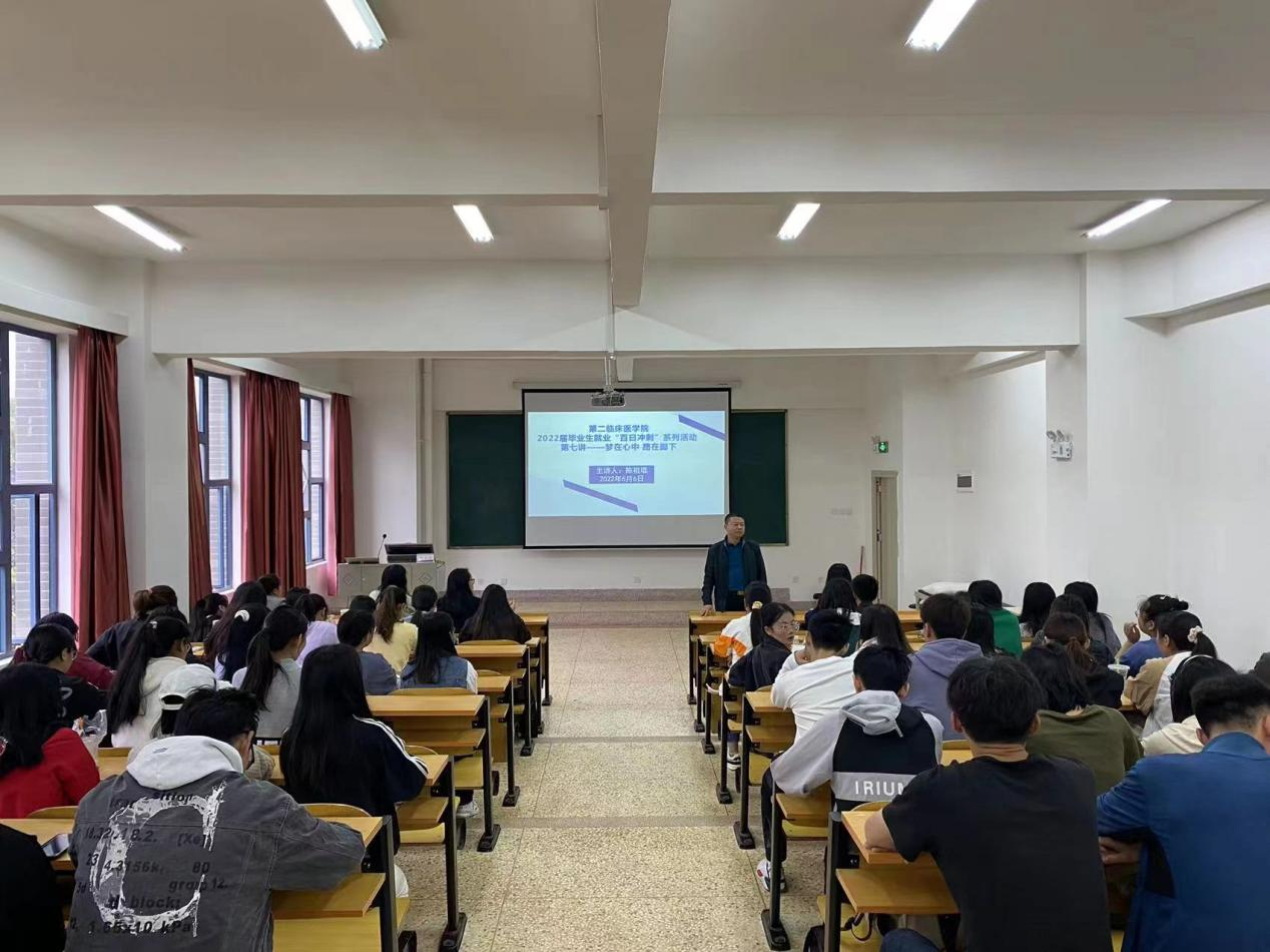 云中讯(通讯员 王联东)第二临床医学院于6月6日上午在修远楼10202开展2022届毕业生就业“百日冲刺”系列活动第七讲,学院党委书记陈祖琨主讲,康复治疗专业全体毕业生参加此次,活动由学院学生党总支书记王丽娟主持。