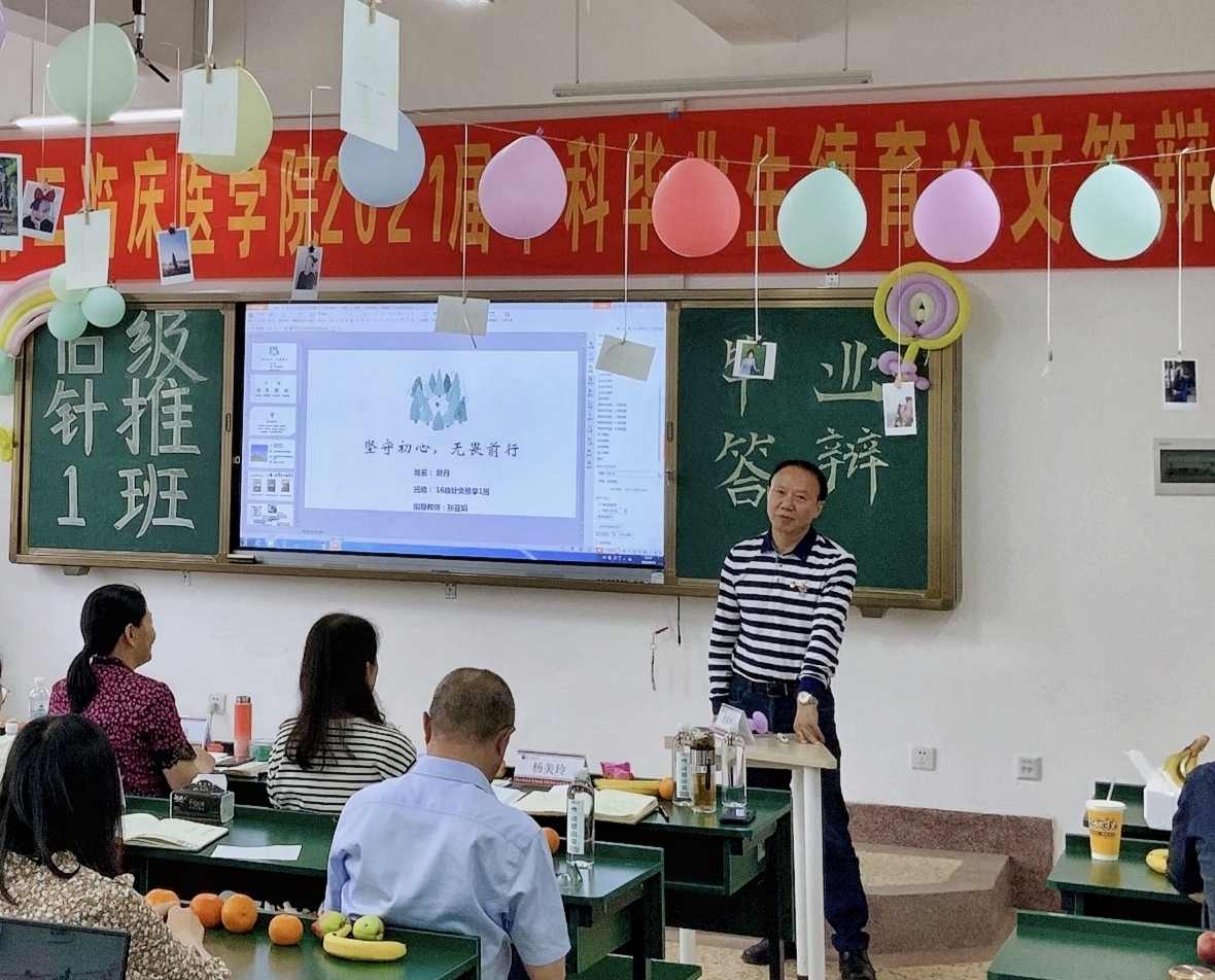 在撰写德育论文和德育答辩中,毕业生们回顾了大学成长历程。感谢母校、老师、对自己的教育和关心,感谢同学、朋友对自己的鼓励和照顾,并对美好未来作出了展望。个人答辩结束后,评委老师针对答辩和论文内容进行提问,并嘱托毕业生们:以德立身,坚持终身学习练就过硬本领,牢记医学生誓言和大医精诚的初心,砥砺前行。