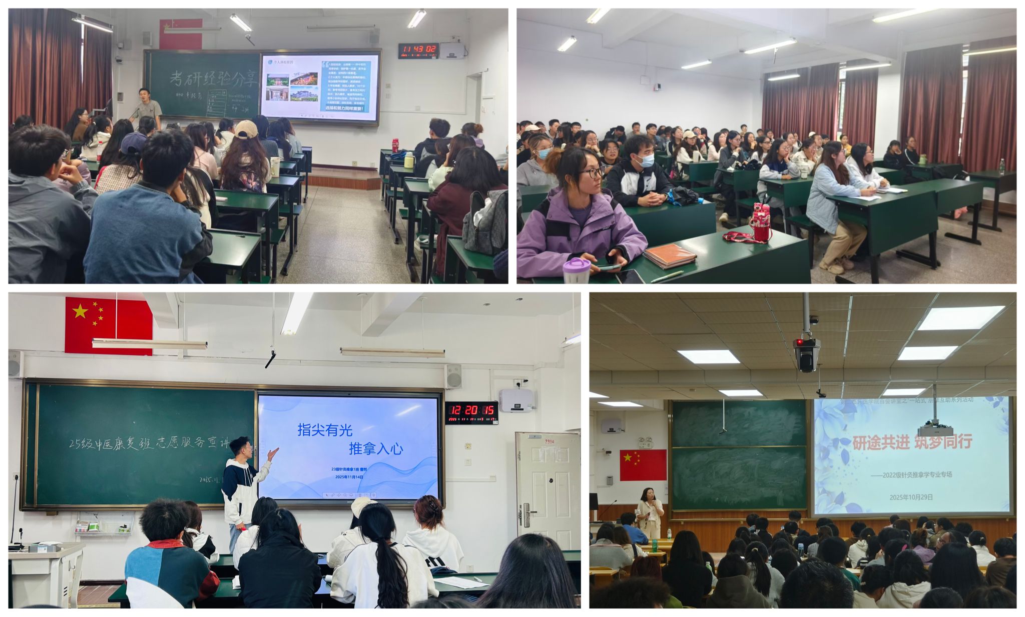 这“十期活动,邀请到了博士生姜圆,研究生幸经芳、尹雪健、刘蕊露,本科生段丽珠、邹侃栖、曹然、李坤乾、汤静怡,2025届毕业生王喜玉、李金、和艺、杨怡雪。活动期间,各位主讲嘉宾结合自身丰富的经历,紧紧围绕“大学生职业规划”与“考研经验分享”两大核心主题,为学弟学妹们带来了一场场干货满满的经验盛宴。