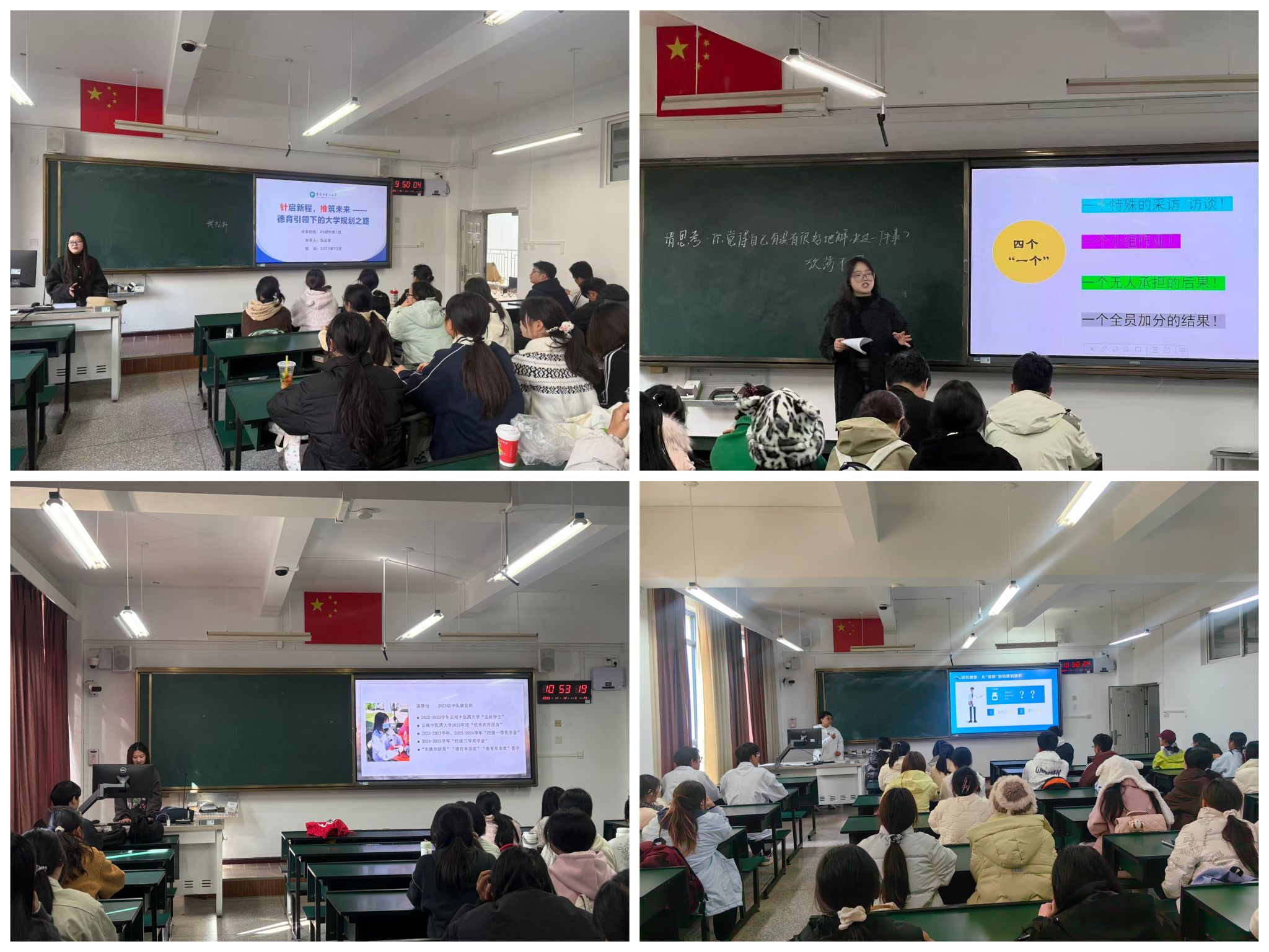 在职业规划板块,姜圆、刘蕊露、段丽珠、邹侃栖、曹然、汤静怡等同学,从不同年级和不同阶段的视角出发,为大家厘清了成长的脉络。姜圆以个人成长故事为主线,深情讲述了自己在创新创业中的奋斗历程。她鼓励同学们要敢于跳出舒适圈,在专业学习之外积极探索学科交叉,勇于尝试创新创业,通过竞赛磨砺意志、提升综合素养。刘蕊露、曹然、李坤乾、汤静怡强调了低年级学生打好专业基础、积极参与文体活动、社会实践的重要性,并分享了如何平衡学生工作与专业学习的技巧。段丽珠、邹侃栖则重点围绕“自立自强”与“解决问题能力”展开分享,她们结合自己的大学生活,勉励学弟学妹们要摒弃依赖心理,学会独立思考与自我管理,在面对困难时,不推诿、不退缩,要主动寻找解决办法,将每一次挑战都转化为成长的垫脚石。
