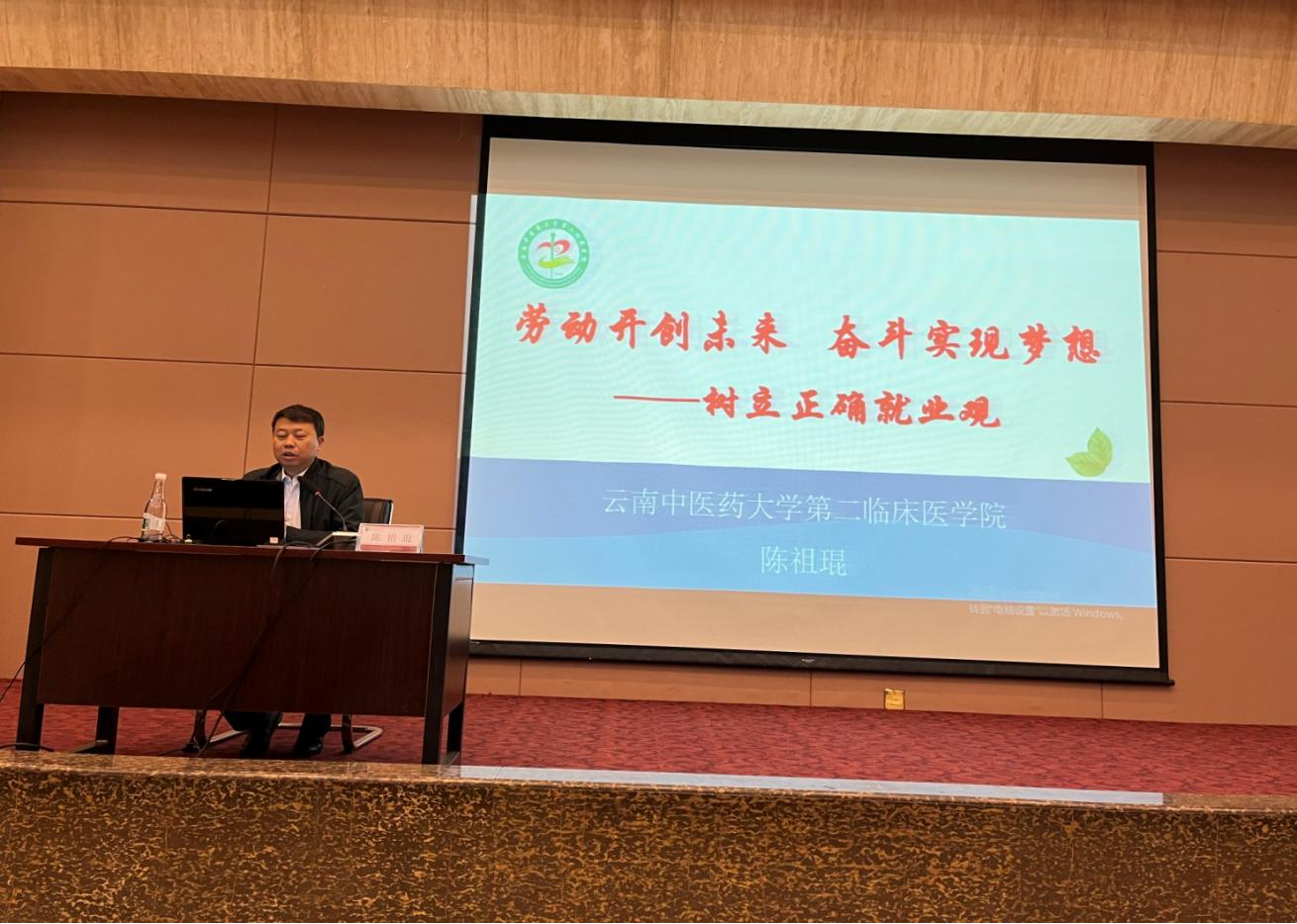 讲座开始,陈祖琨以《劳动开创未来 奋斗实现梦想》为题,结合自身学习、工作经验,从针灸推拿专业就业前景、树立正确就业观、就业注意事项等三个方面做就业动员,引导广大毕业生树立正确的成才观、职业观和积极的就业观。他表示,针灸推拿学专业为广大人民群众喜爱,就业前景广阔,广大应届毕业生求职要结合社会和个人实际,合理调整就业期待值,端正心态,树立“没有最好的工作,只有比较适合自己的岗位”“起点不决定成败,努力将影响结果”“未来要靠自己去争取和奋斗”的就业观和择业观, 脚踏实地、积极进取,争取尽早就业。