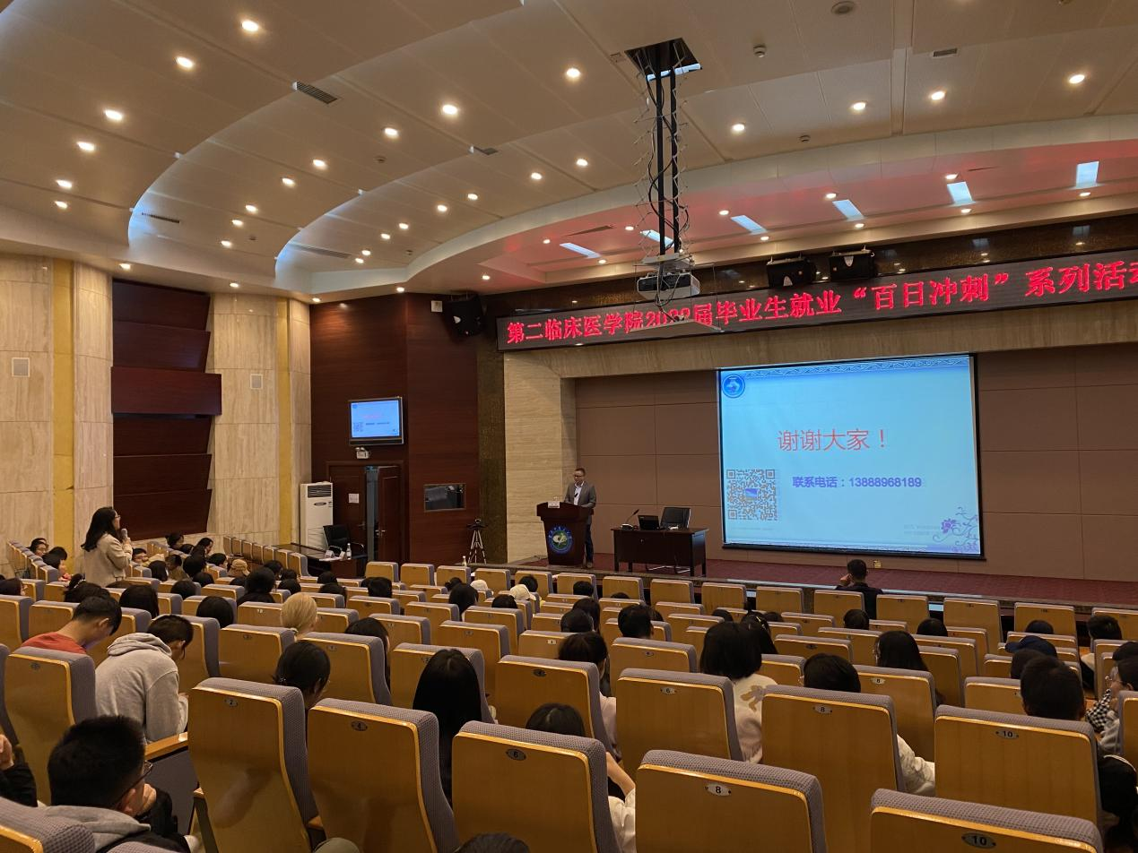 云中讯(通讯员 王联东)为了帮助毕业生提升面试技能,结合毕业生的实际诉求,第二临床医学院于5月17日在翰墨楼一楼报告厅开展2022届毕业生就业“百日冲刺”系列活动第二讲。邀请了昆明市城乡居民社会养老保险局(昆明市劳动能力鉴定中心)局长付明为大家讲授公务员事业单位面试技巧,教务处副处长夏咸松、实习管理科科长王礡,毕业班辅导员和我院全体在校毕业生参加了此次活动。活动由学院副院长袁恺主持。
