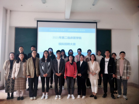 云中讯(通讯员 王联东给学生提供一个就业求职实战的练兵舞台,提升学生求职应聘能力,帮助学生进一步了解用人单位招聘流程第二临床医学院10月28日,在修远楼10202举行“云南中医药大学第十届模拟招聘大赛”初赛。学院黄万琳老师、杨艳芳老师、志豪老师施英华老师、王联东老师担任此次比赛评委。