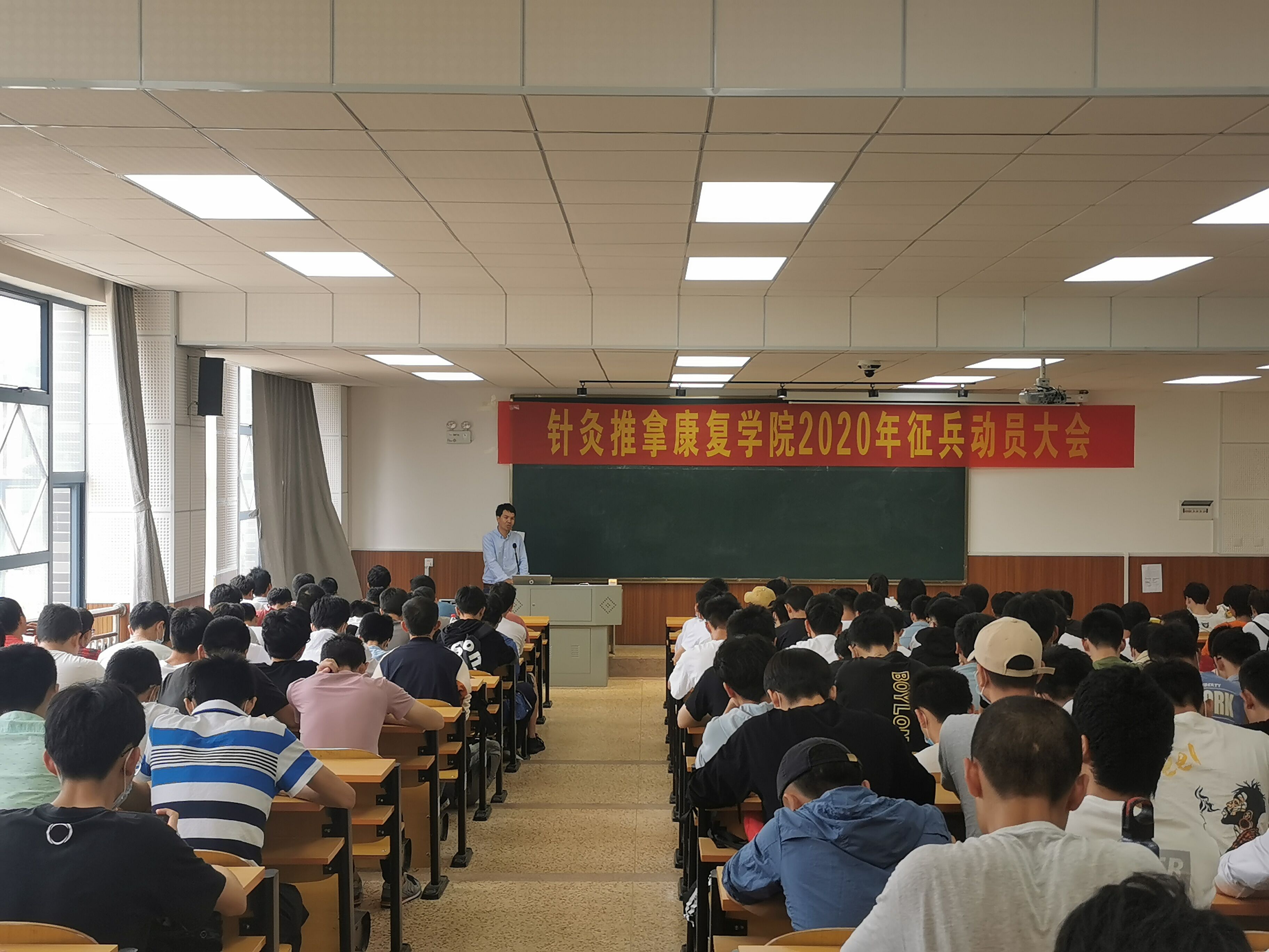 云中讯(通讯员 杨艳芳)携笔从戎,明日英雄。为响应教育部、中央军委国防动员部大学生征兵工作部署,根据学校安排,为部队输送更多高素质兵员,针灸推拿康复学院于6月18日在二期教学楼6307召开了2020年征兵动员大会,会议由学工办主任杨延芳主持。