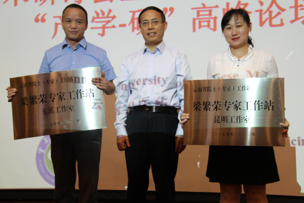 受聘仪式后还举行了“梁繁荣专家工作站”二级工作室授牌仪式。云南中医药大学名誉校长、成都中医药大学原校长梁繁荣教授分别向昆明市儿童医院、云南省残联康复中心、玉溪市中医医院授予“梁繁荣专家工作站”二级工作室的牌匾。标志着梁繁荣教授宝贵的科研与临床经验将下沉基层,惠及更多基层百姓、服务群众,进一步推动云南省中医事业的发展。