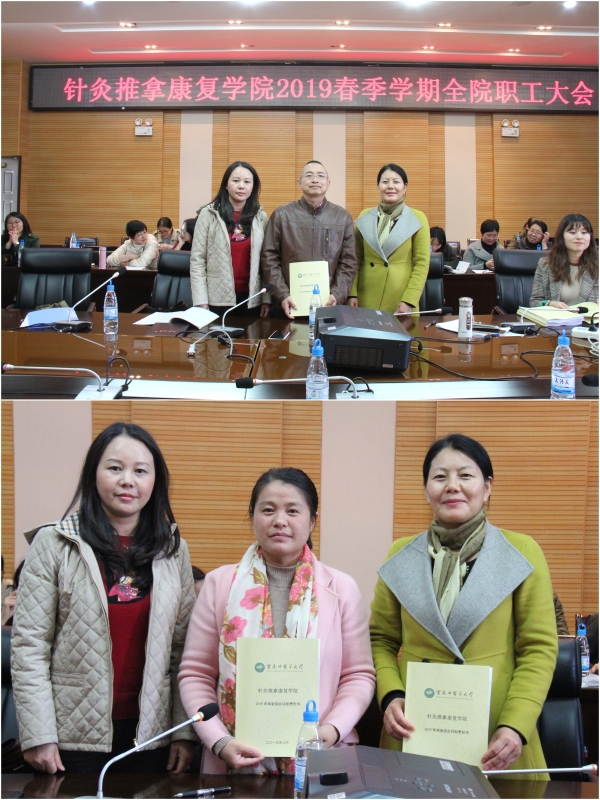 王燕书记首先通报了学院科室职能职责调整与工作人员调整情况,通报针灸推拿康复学院科级干部聘任情况。邰先桃院长传达了学校召开2018-2019学年第二学期第一次教学工作协调会的会议精神,安排部署了我院2019年行政重点工作:一是继续深化职能科室改革;二是加强师资培养;三是加强课程建设;四是加强科研平台建设;五是推进百会班等第二课堂综合改革。